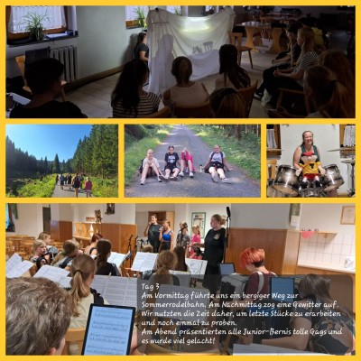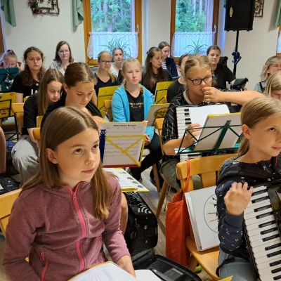Für unsere Junior-Bernis ging es in der letzten Sommerferien-Woche nach Neudorf. Unser "Party-Bus" fuhr uns am Sonntag zur Jugendherberge. Nun hieß es fleißig proben, denn am letzten Tag stand das Abschluss-Konzert im Thermalbad Wiesenbad an. Von Tag zu Tag wurden die Junior-Bernis immer besser, bis sie beim Konzert super abliefern konnten. Natürlich wurde nicht nur Akkordeon gespielt, sondern wir besuchten die Manufaktur der Träume, wanderten zur Sommerrodelbahn und lachten gemeinsam beim Gagabend. Insgesamt war es ein wunderschönes Probelager mit viel Musik und gemeinsamen Erlebnissen, die das Orchester zusammenschweißen!