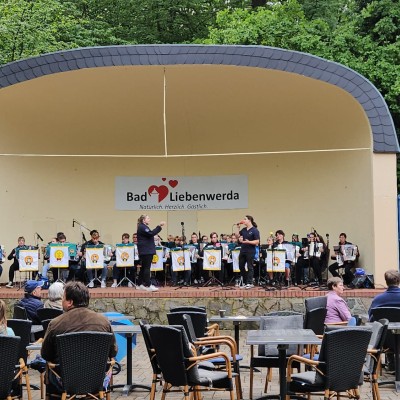 Unser erstes Konzert in der neuen Konzertsaison war gleich ein ganz besonderes Highlight. Das Konzert in Bad Liebenwerda, von uns liebevoll BaLi genannt, stellt jedes Jahr einen Höhepunkt in unserem Konzertkalender dar. Mit dem Bus ging es also zu dieser wunderschönen Konzertlocation. Die Technik wurde aufgebaut, und wir nahmen unsere Plätze auf der Bühne ein. Die ersten Töne von Johann Sebastian Bach versprachen ein erfolgreiches Konzert.