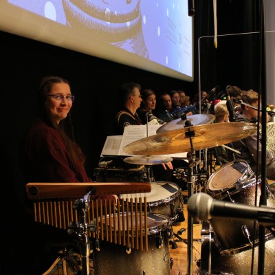 Mit dem Wechsel der Gebietsleitung gab es auch einige Premieren in diesem Programmteil. Zum ersten Mal wurde das Schlagzeug von einer Junior-Berni-Spielerin (Nina) besetzt, und es gab frischen Wind im Dirigat. Ein großer Dank geht an dieser Stelle an Emma und Nina für ihre herausragenden Leistungen! Auch das Gesangsteam der Akkordeonzwerge und der Junior-Benris soll an dieser Stelle noch einmal gewürdigt werden. Die kleinen Sängerinnen steckten viel Zeit und Arbeit in die Vorbereitung des Konzerts und lieferten eine beeindruckende Leistung.