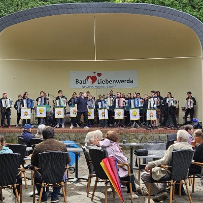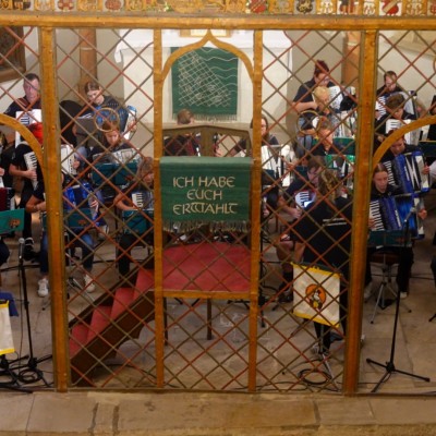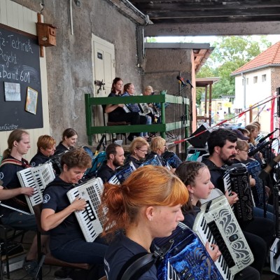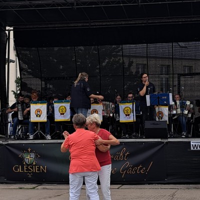 Bereits vertraut mit Lützen, wo unser voriges Konzert stattfand, erfüllte uns die Aussicht auf ein zweites Konzert in dieser Stadt mit Freude. Zum Gedenken an den Jahrestag des Westfälischen Friedens stand ein Auftritt im Festzelt bevor. Unter fast unerträglicher Hitze begannen wir unsere Mission, dem Akkordeon jenseits der Volksmusik neue Facetten zu verleihen. Es erklangen Klänge von Klassik, Rock, Filmmusik und Schlager – ein breites Spektrum aus unserem Repertoire. Die Tageshitze stellte uns vor Herausforderungen, doch wir ließen uns nicht beirren. Nach einer kurzen Erfrischungs-Pause betraten wir erneut die Bühne. Unsere Darbietung hinterließ ein beeindrucktes Publikum, das dem Akkordeon nun zweifelsohne mehr zutraut als nur volkstümliche Melodien.