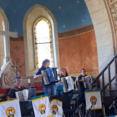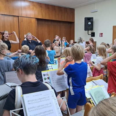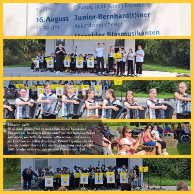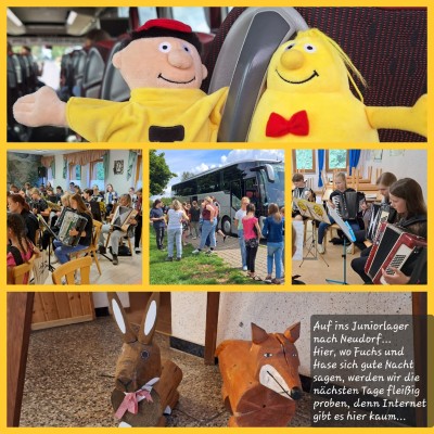Für unsere Junior-Bernis ging es in der letzten Sommerferien-Woche nach Neudorf. Unser "Party-Bus" fuhr uns am Sonntag zur Jugendherberge. Nun hieß es fleißig proben, denn am letzten Tag stand das Abschluss-Konzert im Thermalbad Wiesenbad an. Von Tag zu Tag wurden die Junior-Bernis immer besser, bis sie beim Konzert super abliefern konnten. Natürlich wurde nicht nur Akkordeon gespielt, sondern wir besuchten die Manufaktur der Träume, wanderten zur Sommerrodelbahn und lachten gemeinsam beim Gagabend. Insgesamt war es ein wunderschönes Probelager mit viel Musik und gemeinsamen Erlebnissen, die das Orchester zusammenschweißen!