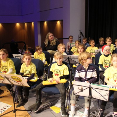 Die Nachwuchsmusiker ernteten viel Applaus und wurden mit einer Zugabe belohnt. Gemeinsam schlossen sie den ersten Programmteil, wie in jedem Jahr, mit "Jingle Bells" ab.