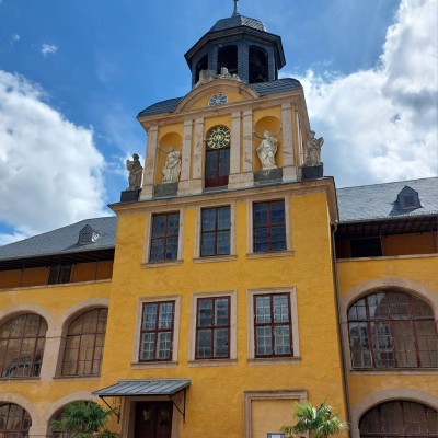 Nach einer Probe am Vormittag machten wir uns am Nachmittag auf den Weg zu unserem letzten Tournee-Konzert. Weit oben auf dem Berg steht das Schloß Blankenburg. Im idyllischen Schlosshof wartete schon ein gespanntes Publkum auf uns. Unter den Zuschauern befand sich ein Regisseur aus Berlin, der gleich seine Kamera schnappte und uns beim Spielen filmte....wir sind gespannt auf die Aufnahmen.