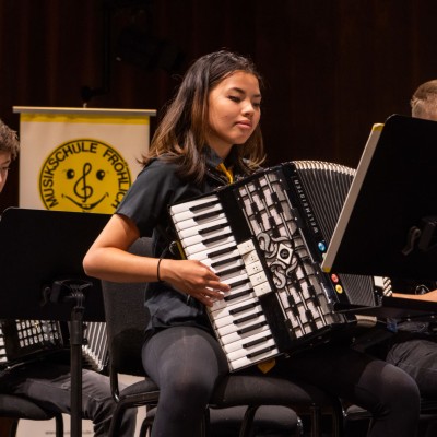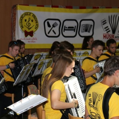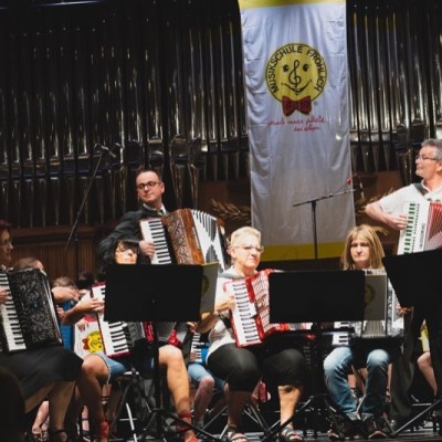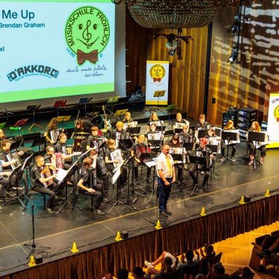 Über 130 junge und junggebliebene Musikerinnen und Musiker der Musikschule Fröhlich standen am 24.6.2018 auf der Konzerthausbühne: Die Anfänger auf der Melodika begeisterten mit flotten Melodien, die Akkordeongruppen wagten sich auch an amerikanische Lieder und die Jugendorchester Tastissimo und D’AKKORD wussten unter der Leitung von Adrian Holzer mit Sommerhits wie „Sofia" bis hin zu „Mission Impossible" das Publikum zu begeistern.