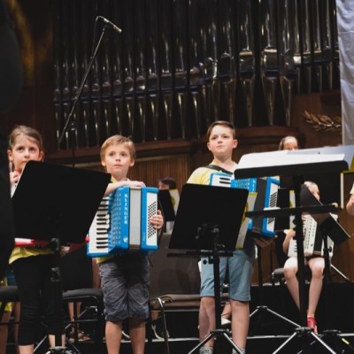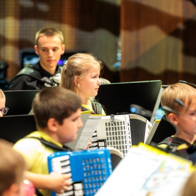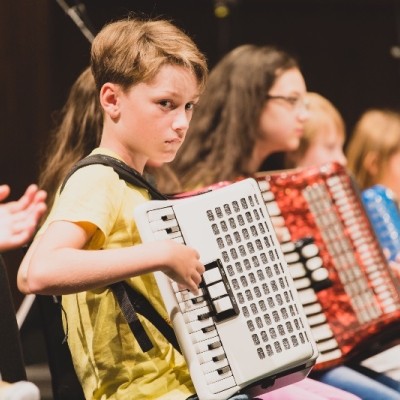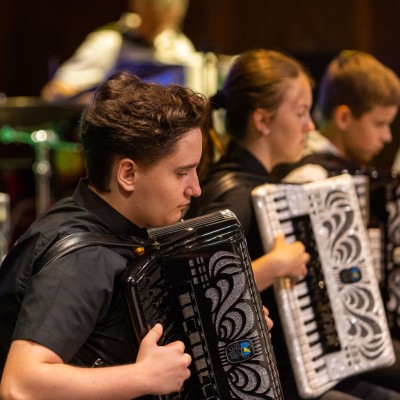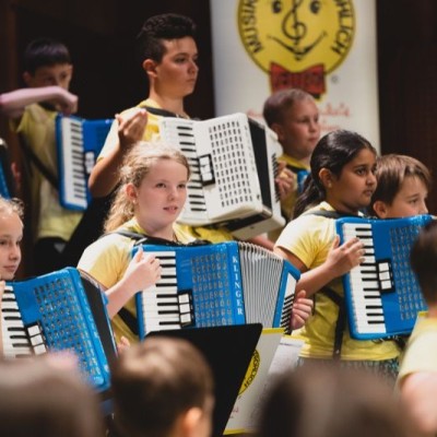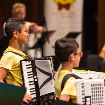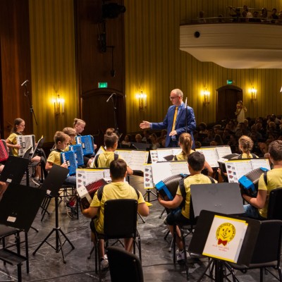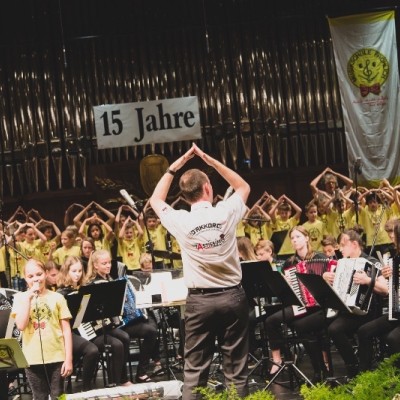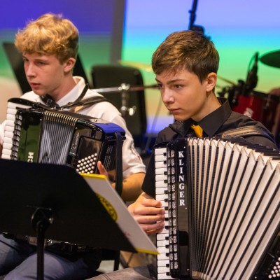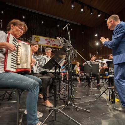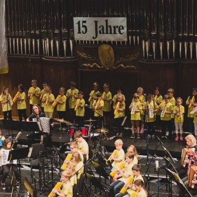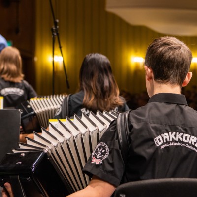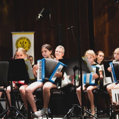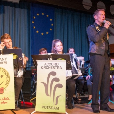 Die Akkordeonorchester der Musikschule Fröhlich „Accord Orchestra Potsdam“ unter der Leitung von Guido Ross und „Tastissimo“ und „D’AKKORD“ unter der Leitung von Adrian Holzer spielten Melodien aus etablierter Klassik, Ausschnitte aus populären Musicals und unvergessenen Filmmusiken sowie aktuelle Hits aus Rock und Pop.