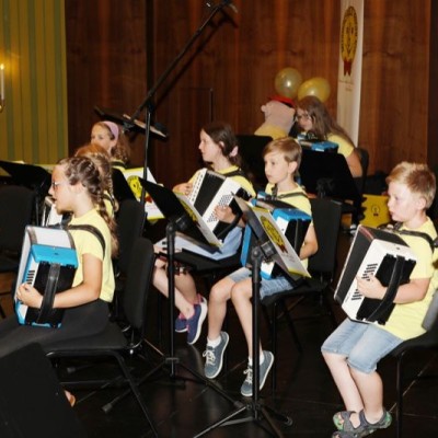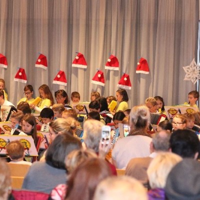 Neben den Anfängern auf der Melodika hatten sich auch die Akkordeonspieler mit nur kurzer Vorbereitungszeit auf ihren großen Auftritt vorbereitet. Unser Jugendorchester „Tastissimo“ brachte das Publikum mit schönen Melodien in Stimmung.