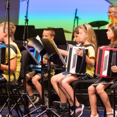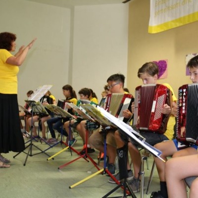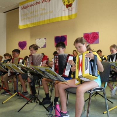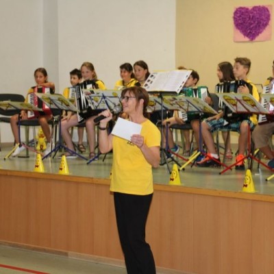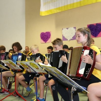 Das Publikum wurde mit den unterschiedlichsten Musikrichtungen verwöhnt: Vom einfachen Kinderlied auf der Melodika bis hin zu Hits wie „Pirates of the Caribbean“, „Narcotic“ und „Game of Thrones“ vom Akkordeonorchester D’AKKORD (Ltg. Adrian Holzer) war für jeden Geschmack etwas dabei. Durchs Programm führte mit Charme und Witz Alina Garber. Jetzt geht es für alle in die wohlverdienten Ferien.
