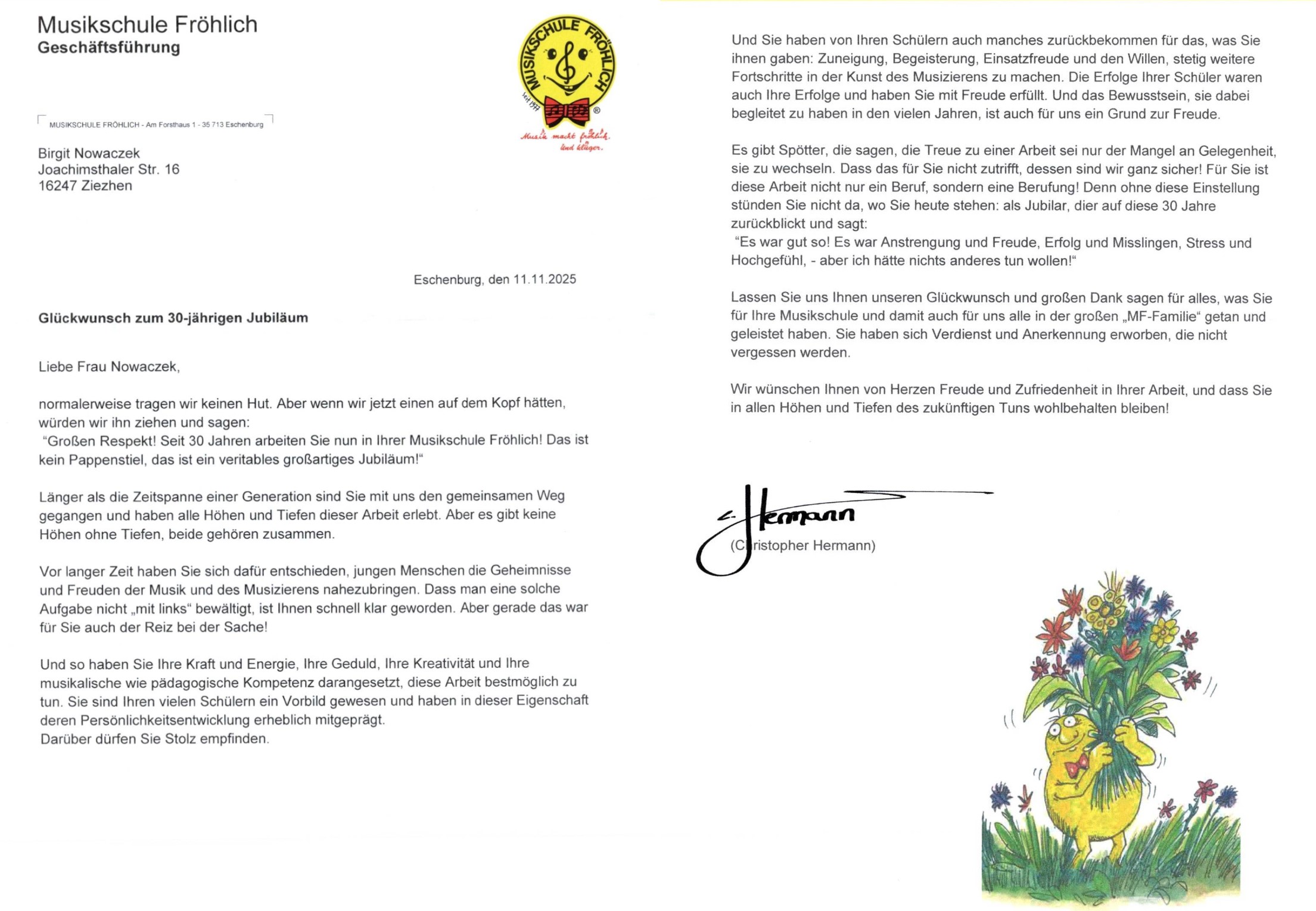 Ein netter Abschiedsbrief hilft da auf jeden Fall! Danke!